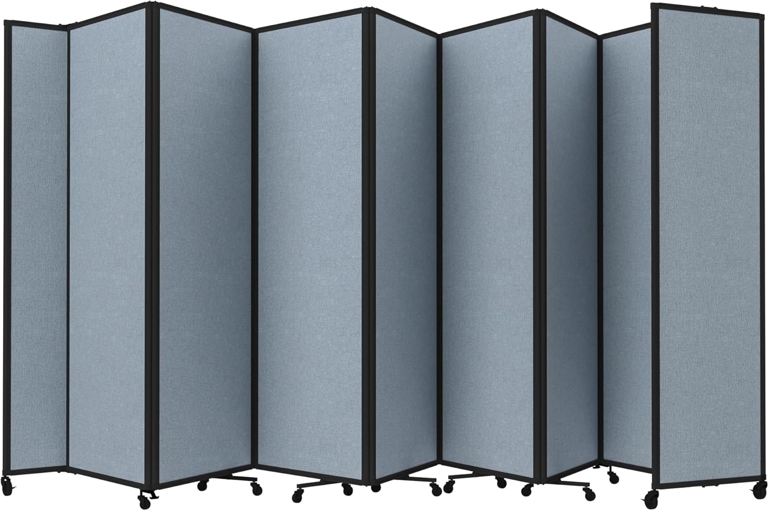 - THOUGHTFUL DESIGN: Made to roll around easily on wheels, this portable room separator also features locking casters to hold it in place. It comes with a trackable surface, sound-dampening fiberglass panels and a folding design for easy storage.