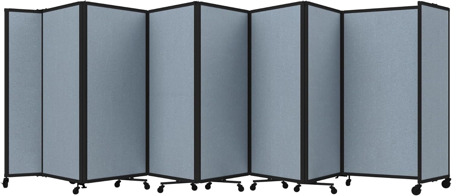 - THOUGHTFUL DESIGN: Made to roll around easily on wheels, this portable room separator also features locking casters to hold it in place. It comes with a trackable surface, sound-dampening fiberglass panels and a folding design for easy storage.