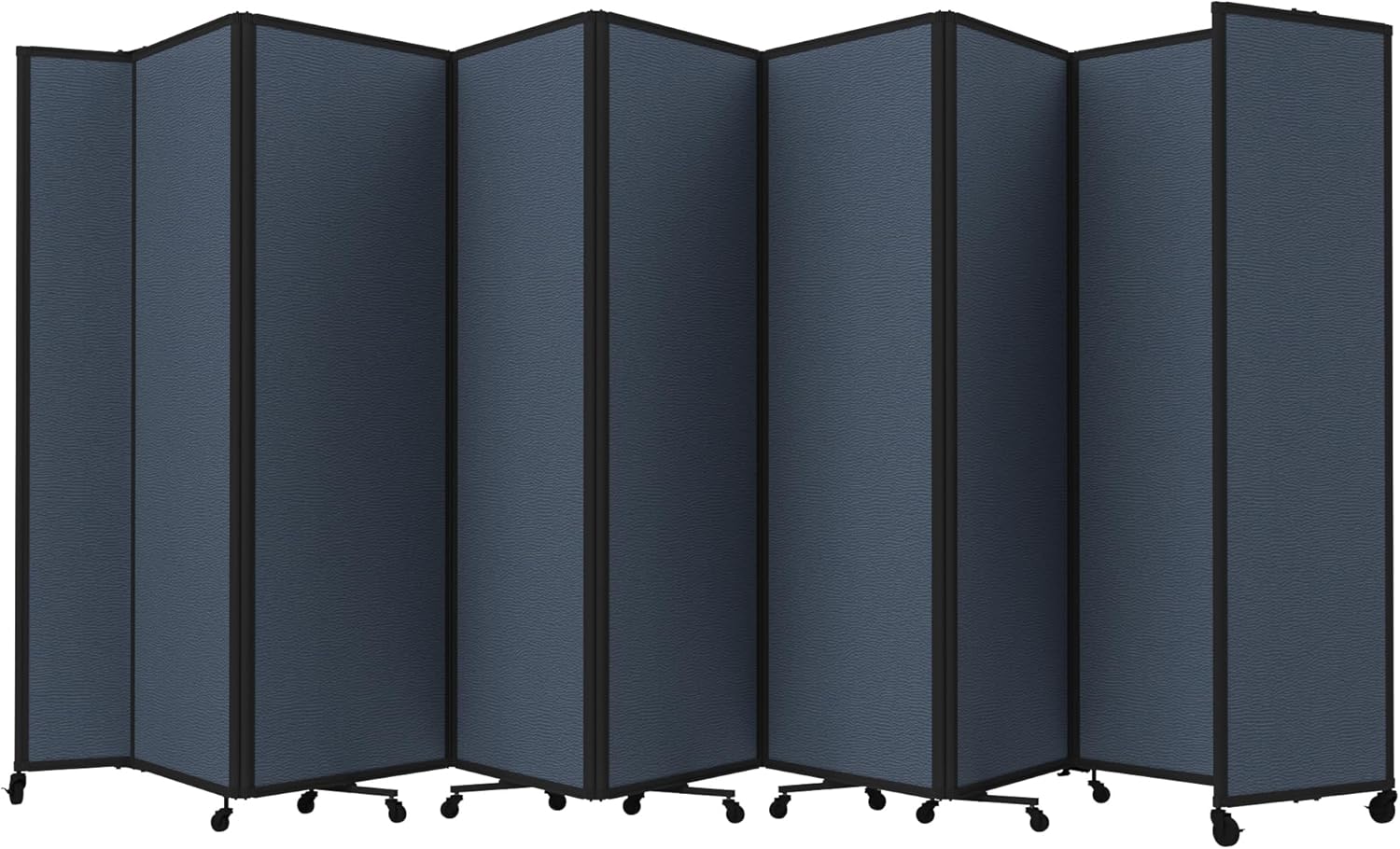 - THOUGHTFUL DESIGN: Made to roll around easily on wheels, this portable room separator also features locking casters to hold it in place. It comes with a trackable surface, sound-dampening fiberglass panels and a folding design for easy storage.
