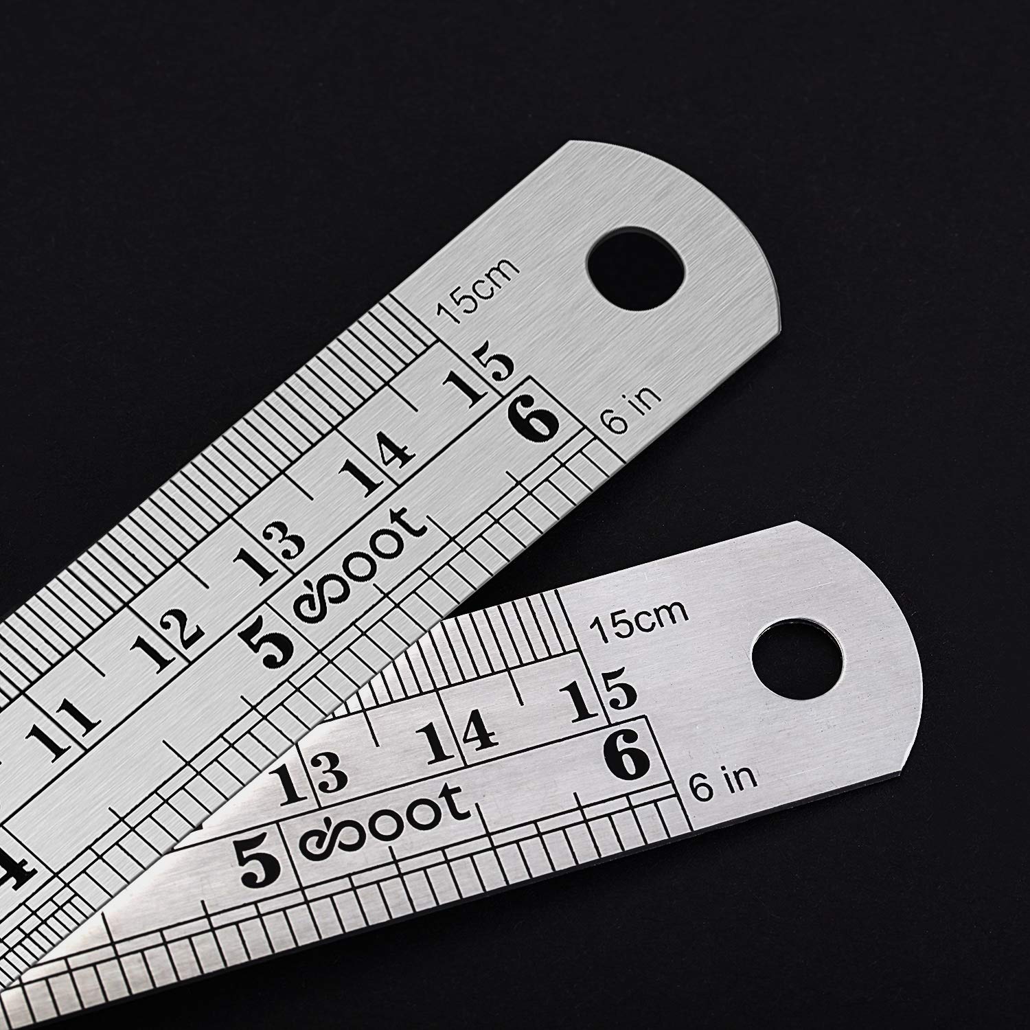 Stainless 2 Pack Steel Ruler 6 Inch Metal Rule Kit with Conversion TableC