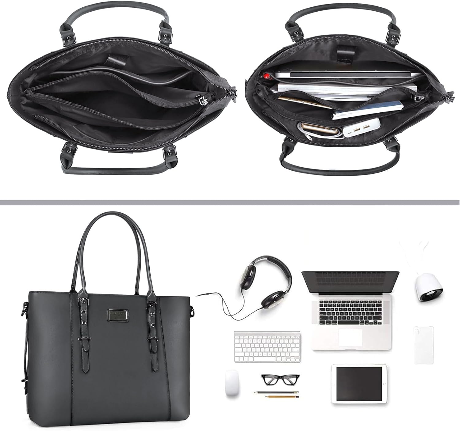 MOSISO PU Leather Laptop Tote Bag for Women, Waterproof Large Capacity Business Work Briefcase Shoulder Laptop Bag