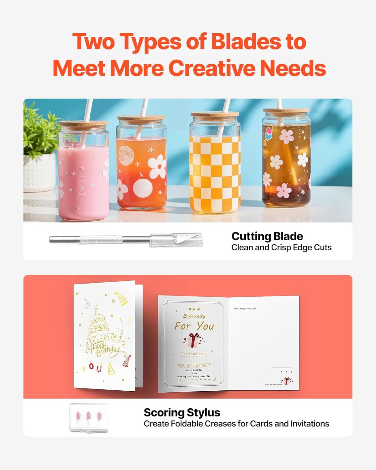 VEVOR Cutting Machine, Automatic Edge Detection Vinyl Cutter Machine with Two Types of Blades, Design Software and Materials, Compatible with Multiple File Formats, for Creating Customized DIY Crafts