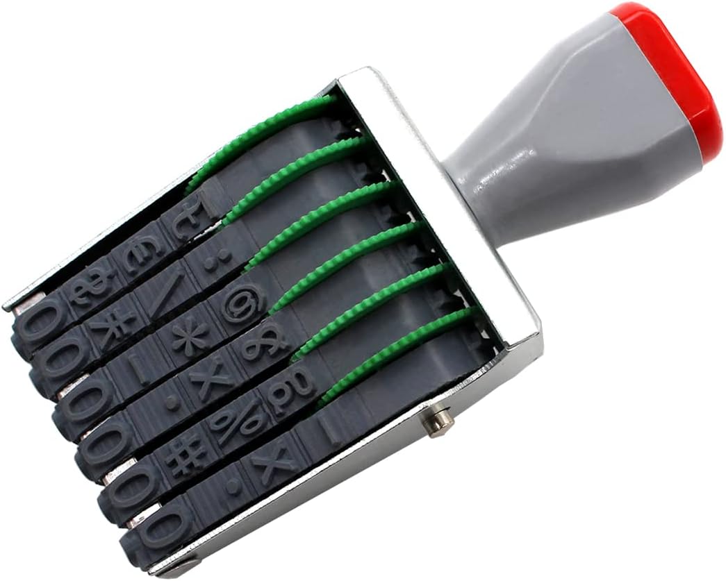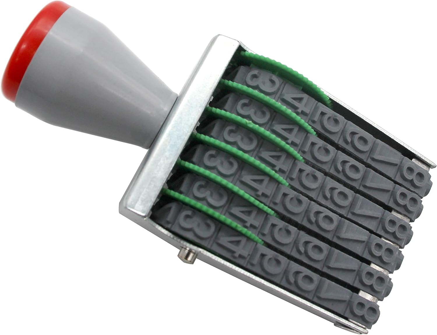 - Traditional 6 digit Number Stamps, Material : Metal, Rubber, Plastic; Size:Length :100 mm/3.93 in, Width:40 mm/1.57 in,High25 mm/0.98 in; Character : Width:7 mm /0.27 in,Height:10 mm/0.39 in; Color : Gray black; Weight: 60 g; Package Content : 1 X Numbering Stamp Without ink,Requires a separate ink pad