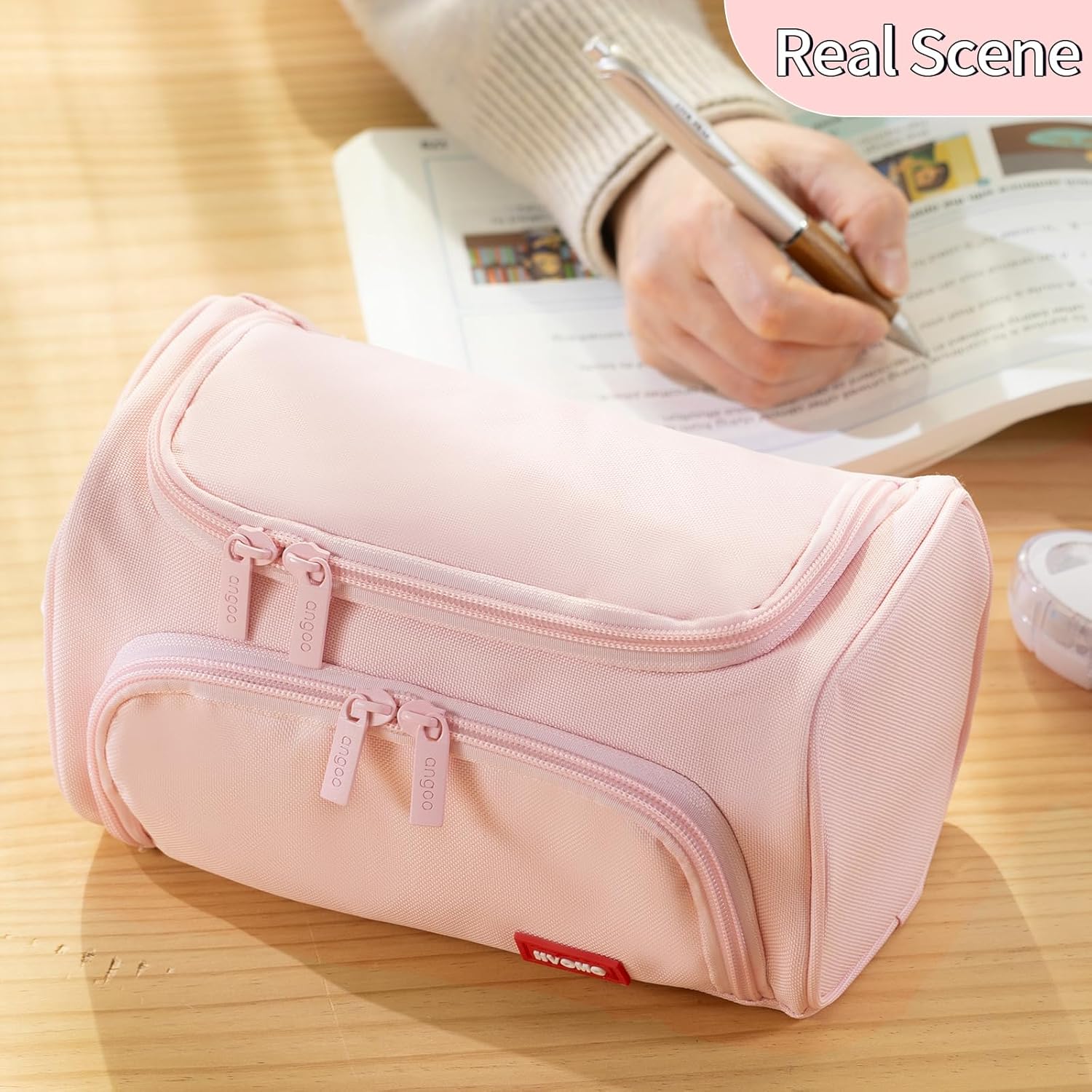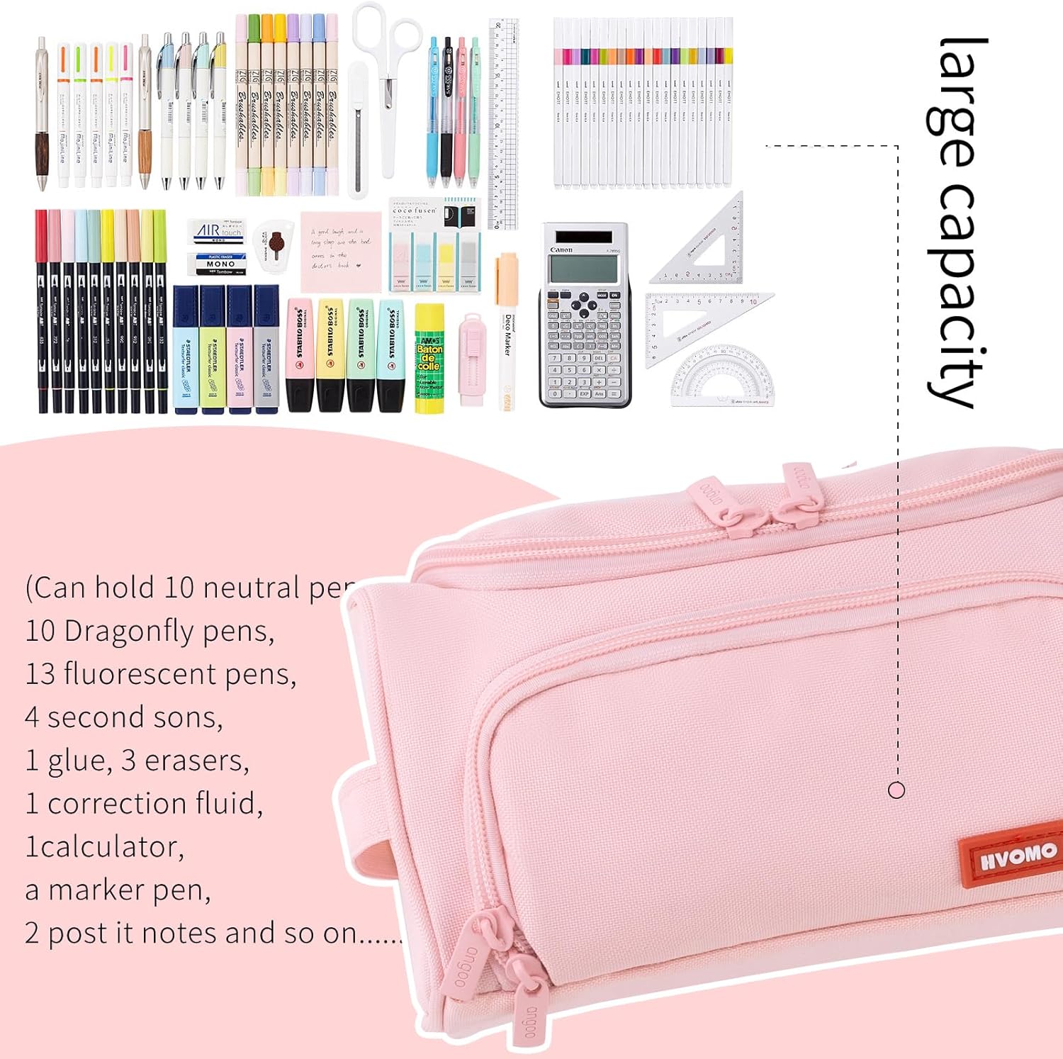 HVOMO Big Capacity Pencil Case High Large Storage Pouch Marker Pen Case Travel Simple Stationery Bag School College Office Organizer for Teens Girls Adults Student(Pink)