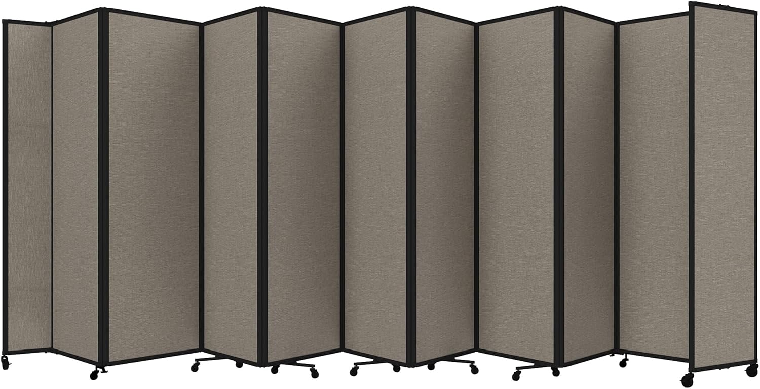 Versare Room Divider 360 Portable Wall Partition | Folding Panels | Large Freestanding Divider | Locking Wheels | Temporary Room Separator | 25' x 7'6'', Warm Pebble