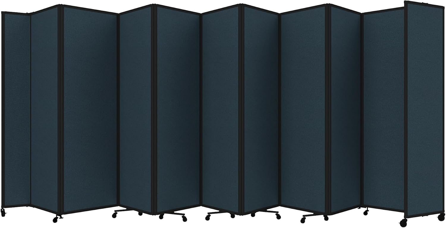 - THOUGHTFUL DESIGN: Made to roll around easily on wheels, this portable room separator also features locking casters to hold it in place. It comes with a trackable surface, sound-dampening fiberglass panels and a folding design for easy storage.