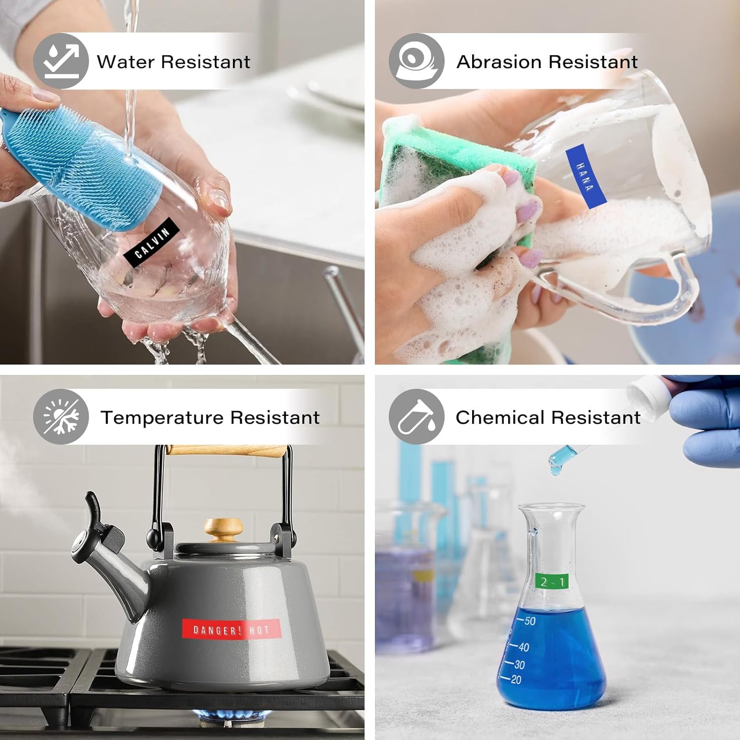 - Features: water resistant, fade resistant, abrasion resistant, grease resistant, grime resistant, chemical resistant and temperature resistant. They are an ideal solution for labeling tasks in home, office, industry, school libraries, kitchen, asset management and other fields.