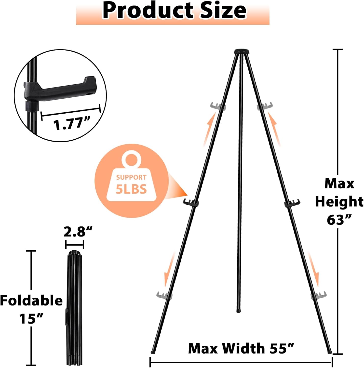 Easel Stand for Display Wedding Sign - 63" Foldable Easel Portable Artist Floor Easel - Easy Folding Telescopic Adjustable Art Poster Metal Stand (2 Pack)
