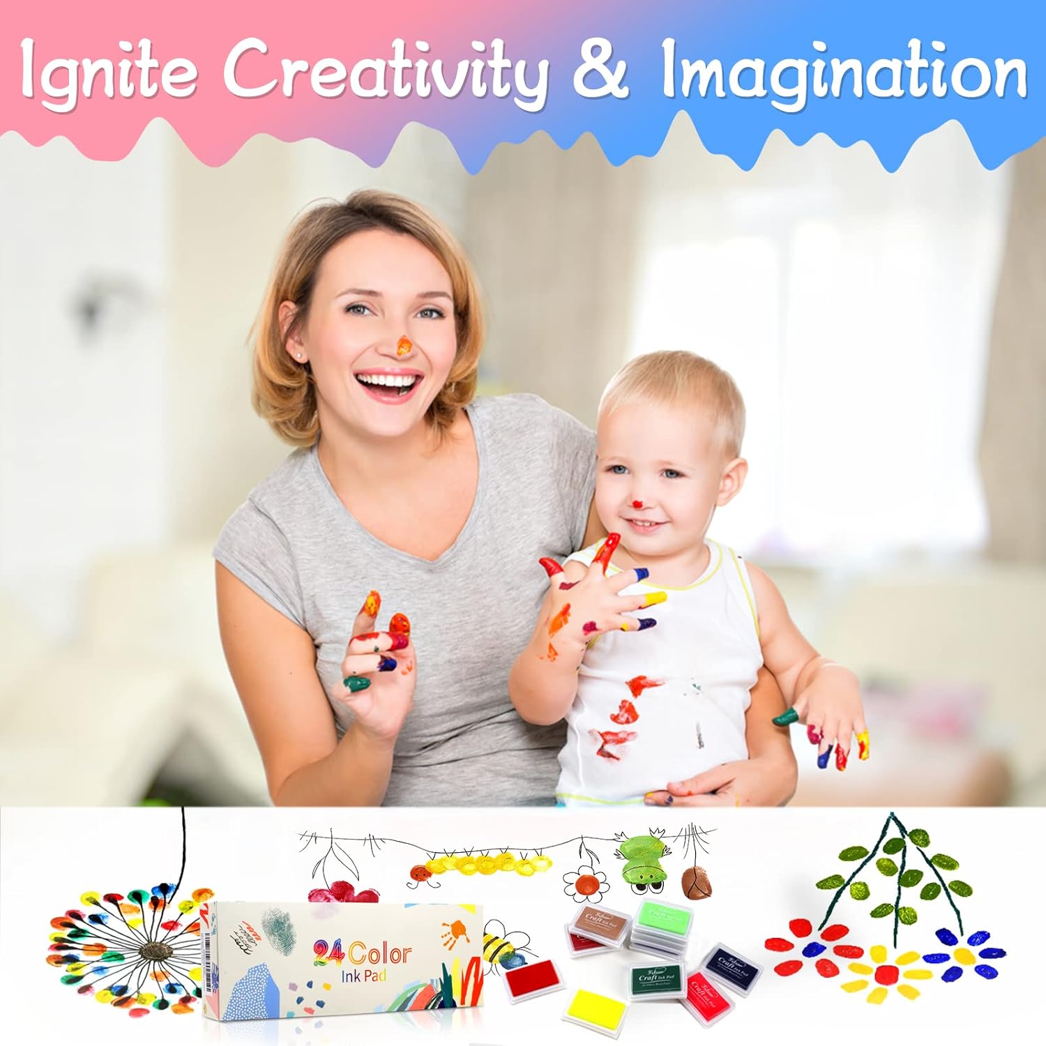 - 24 Vibrant & Attractive Colors – Includes 24 bright and beautiful ink pad colors that inspire creativity. Kids will love the variety and can use their imagination for fingerprint art, hand stamping, and other craft activities.