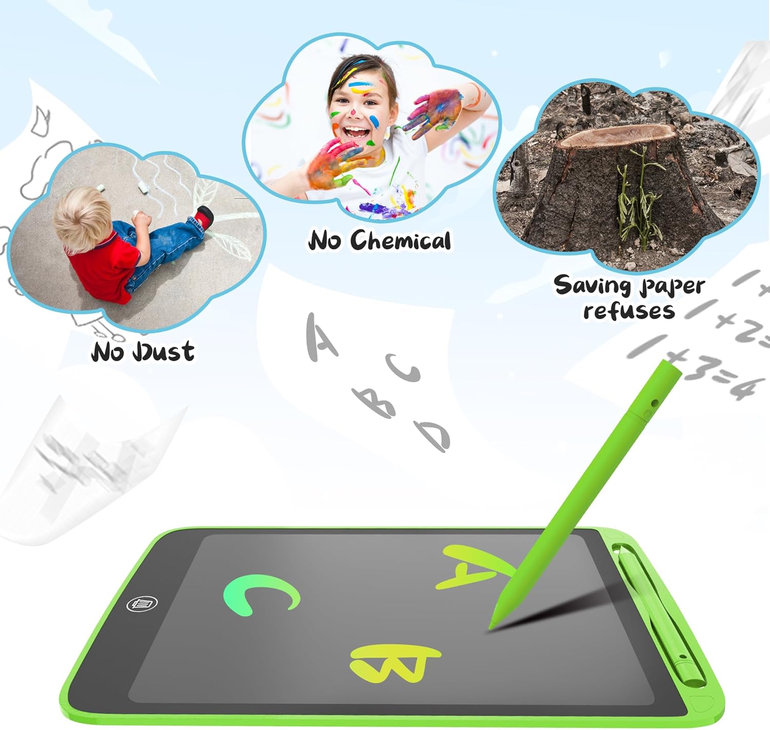 - 【Eye Protection】The kids' electronics writing tablet adopt lcd screen, no radiation, no glare, Its safe and comfortable when children use for a long time. The writing tablet provides a good place for kids to drawing, writing, graffiti, which can develop kid's imagination and practical ability
