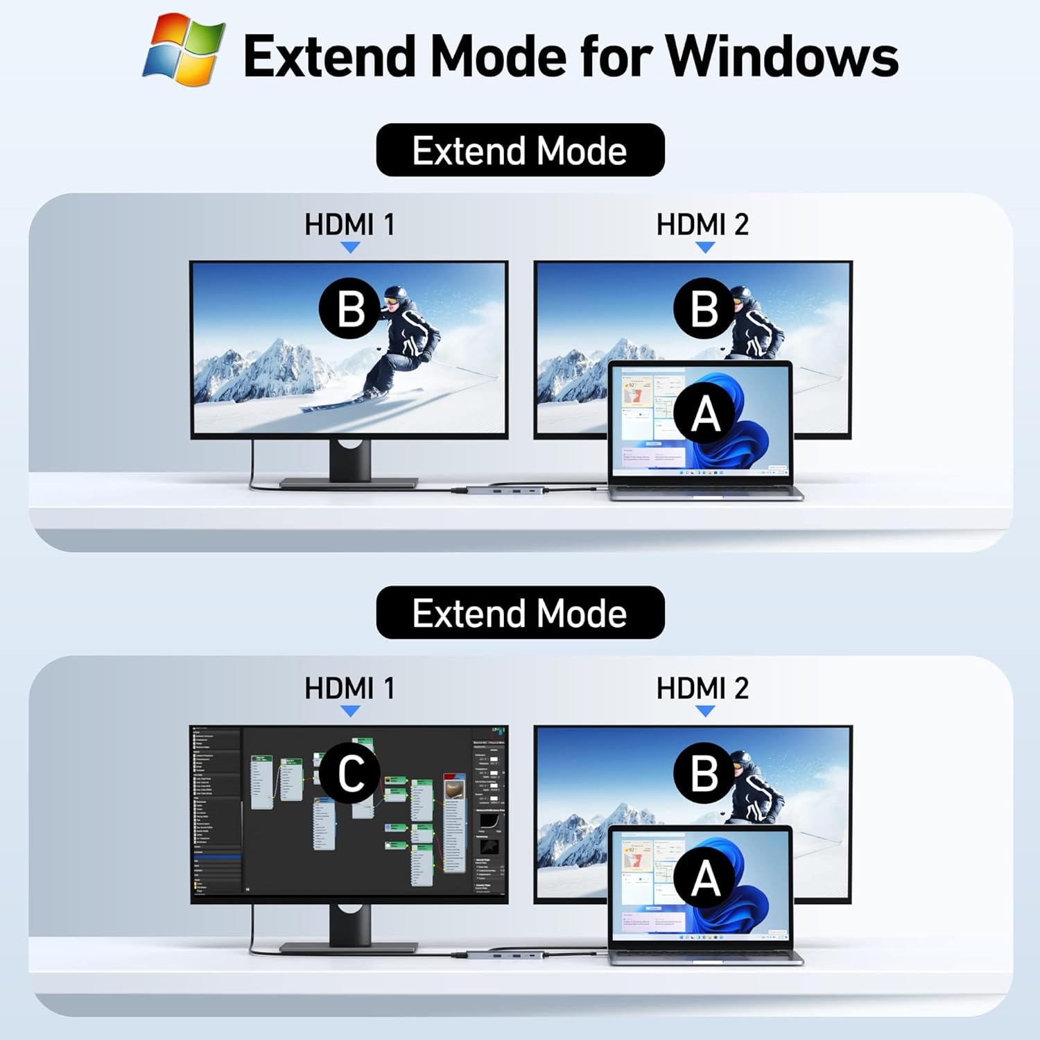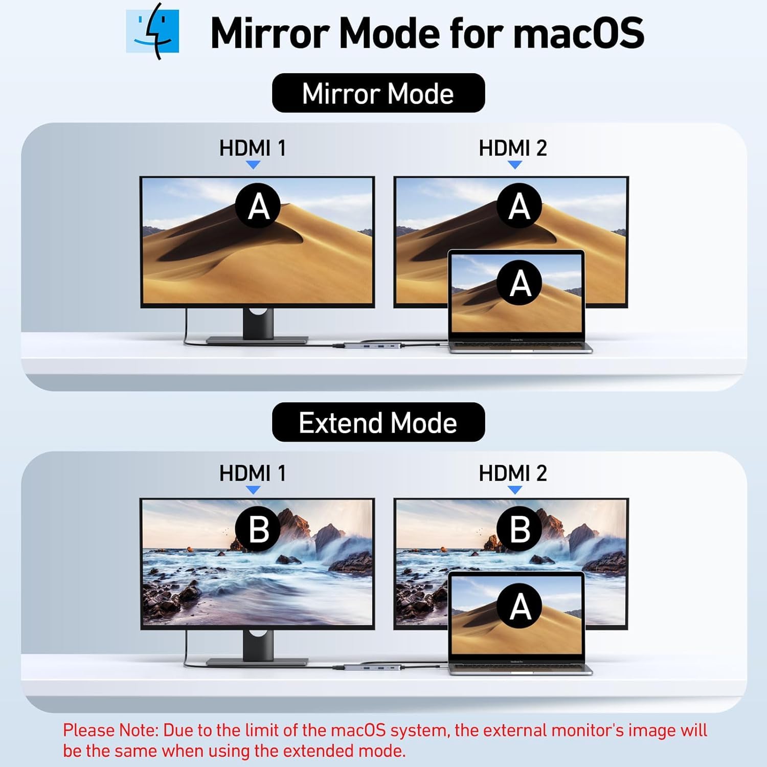 - [Dual Monitors Made Easy for DP1.4 Laptop] Note for Mac Users: This docking station only supports mirror mode (SST) on macOS systems, not extended desktop mode (MST). With our advanced intelligent technology, the 2 HDMI to USB C adapter provides temperature control and stable performance. Boost productivity with our usb c dual hdmi supporting MST mode under Windows Laptop for extending two monitors simultaneously