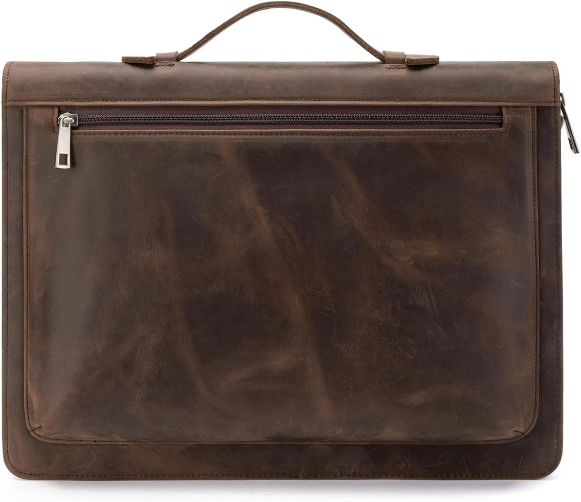- GIVE THE PROFESSIONAL FIRST EXPRESSION –100% Full Grain Crazy-horse Leather, Our quality leather feels soft and luxurious while protecting all your important documents.Features portable handle for easy travel,Sturdy and smooth zipper, to ensure the safety of items; outside zippered pocket for quick-access,can hold A5-size documents; plenty of storage room and pockets to hold your phone, iPad, documents and other accessories.