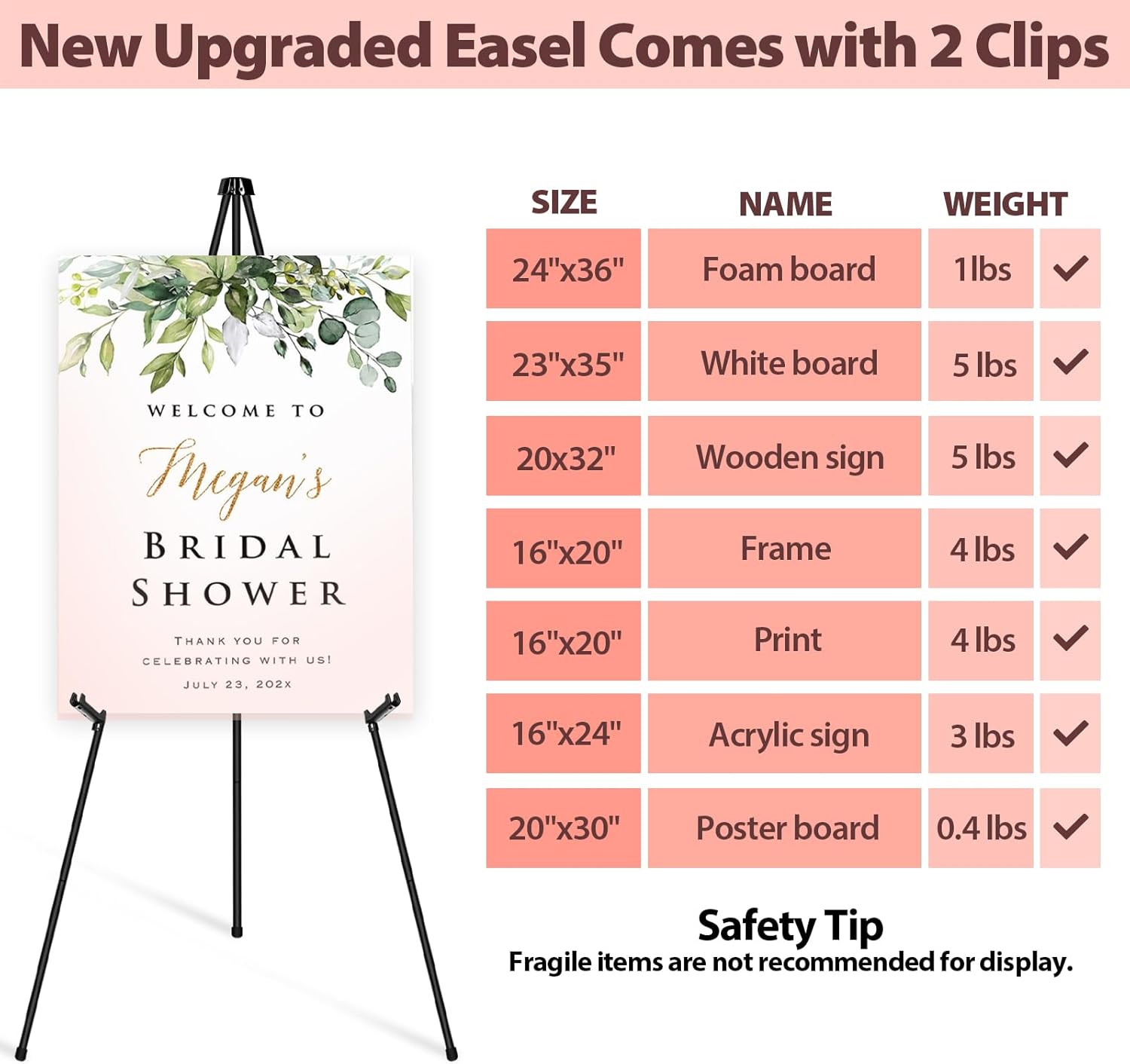 - Lightweight Easel for Sign - This metal easel is suitable for displaying lightweight arts & crafts easels up to 5 pounds, such as wedding signs, foam boards, canvas, photo frames, sketch boards etc