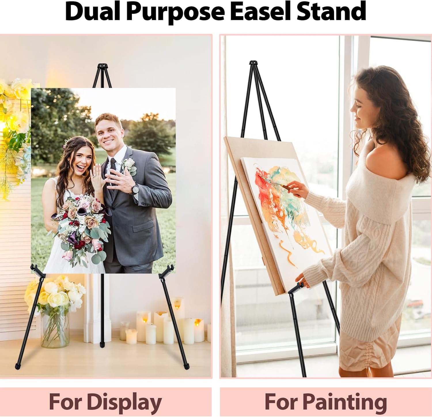 Black Easel Stand for Wedding Signs, Posters & Paintings - 63" Adjustable Portable Display Easel for Welcome Signs, Art Canvas, Pictures - Folding Tripod Stand with Carry Bag (1 Pack)