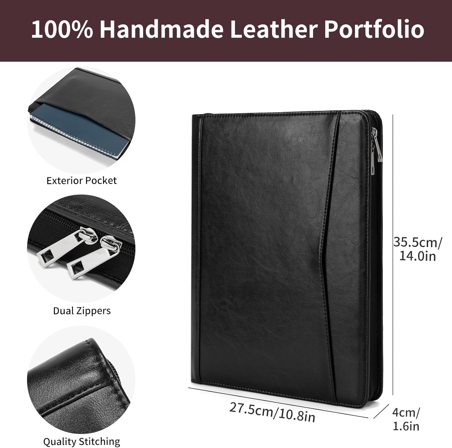 - Effortless Organization: To enhance your daily efficiency, this leather portfolio includes 2 pen loops for easy access to writing instruments, 2 business card slots for networking essentials, an earbud pocket for tangle-free earphone storage, and a dedicated cell phone holder, ensuring all your essentials are readily accessible and neatly organized. Say goodbye to disorganized bags and hello to a more streamlined and efficient workday.