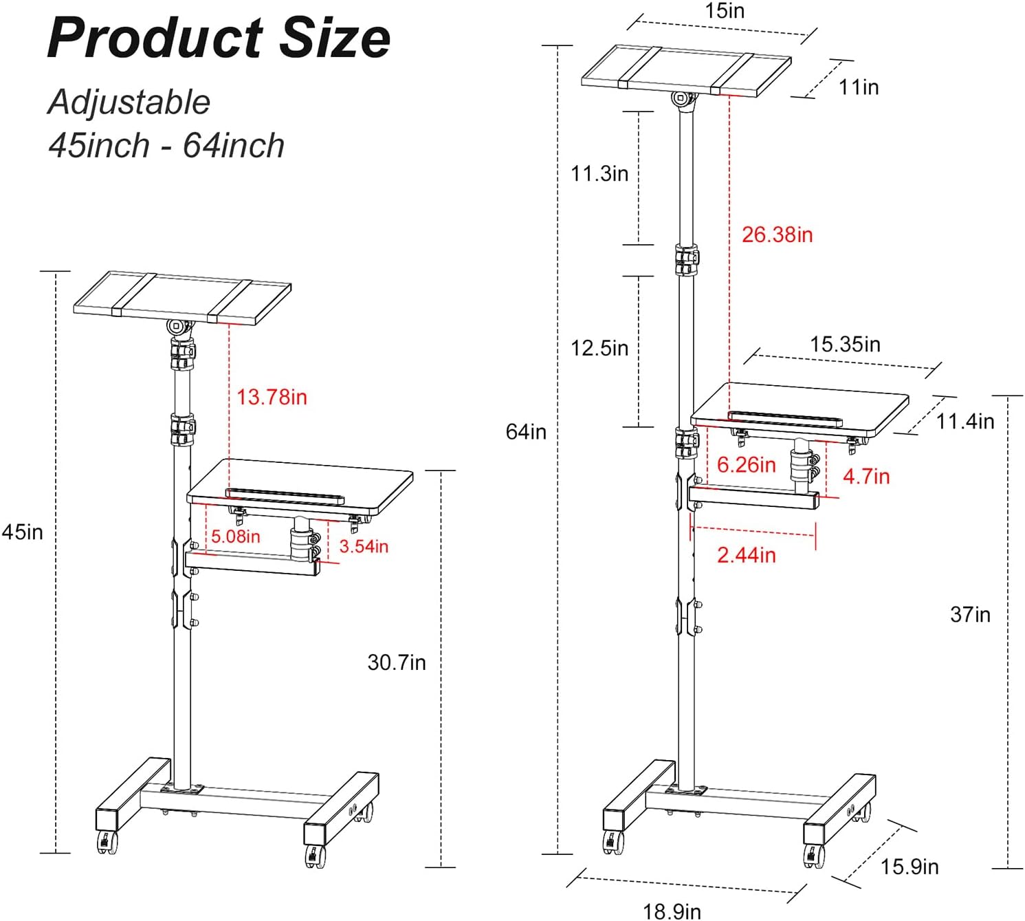 - Multifunctional Overbed Table: Comes with 2 adjustable trays, allowing multiple devices to be used at the same time, such as projectors, laptops, music players and DJ equipment