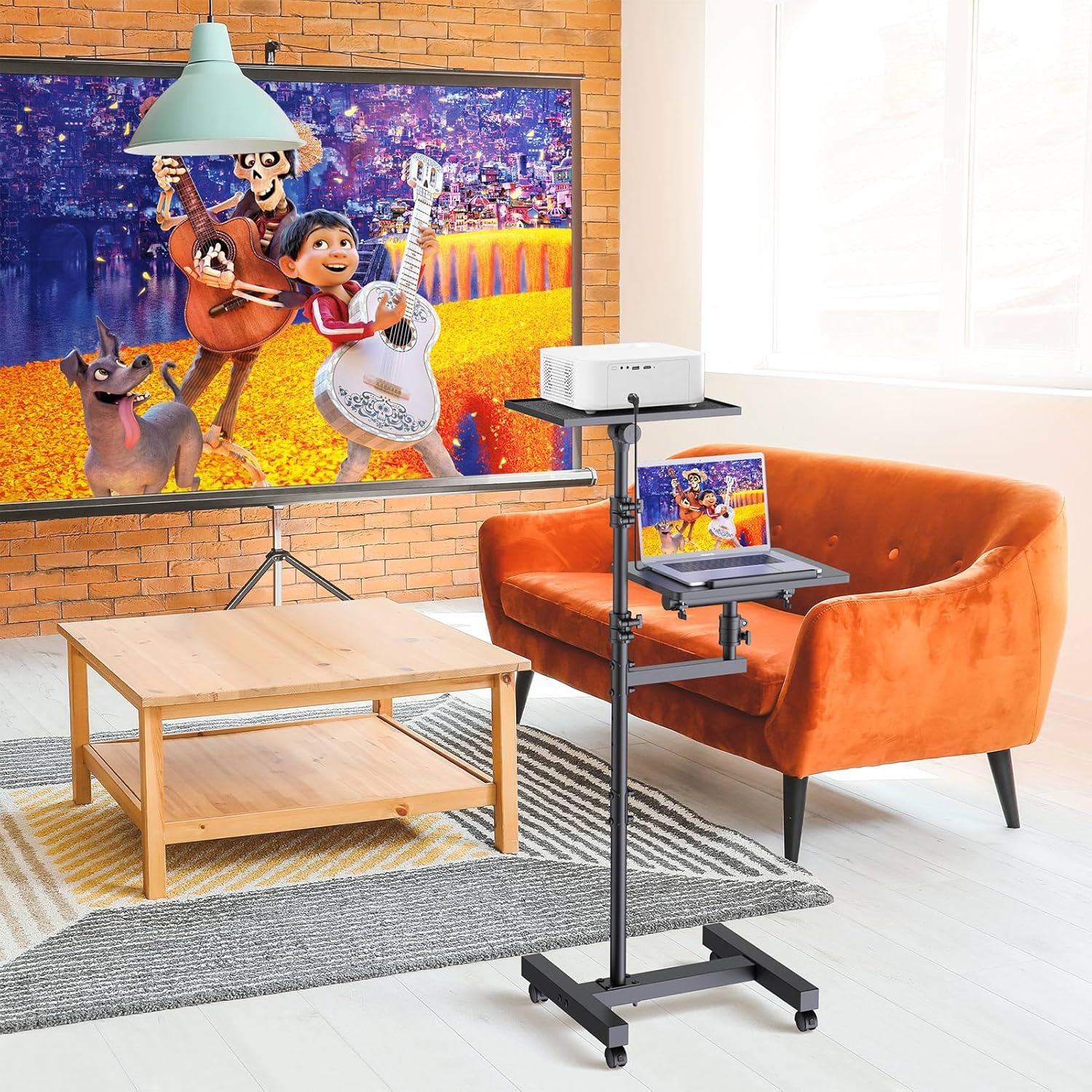 - Rolling Projector Stand: This projector stand comes with four high quality silent casters that can swivel freely through 360° for a very smooth motion. All casters are lockable to increase the utility and safety of this product