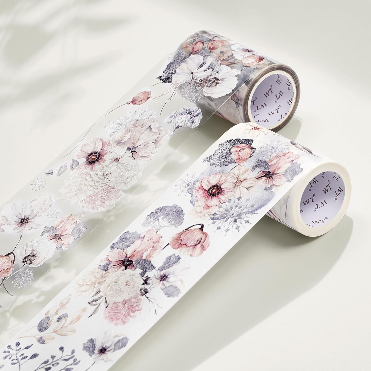 WT Frostbloom Wide PET Tape, Single Roll, Original Floral Designs, Winter Flowers, Clear Transparent Adhesive Tape for Junk Journals, Scrapbooks, Bujo, Planners, DIY Crafts, Art Stationery