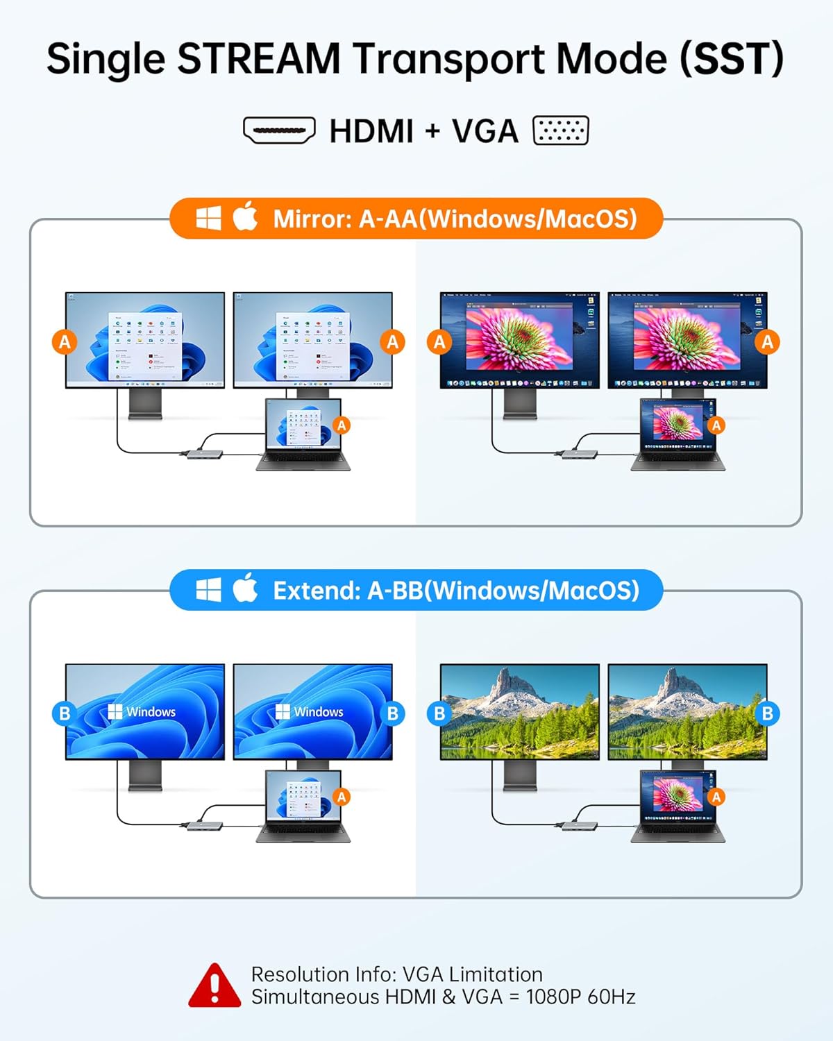 - š¦ššš»š»š¶š»š“ 4K@60Hz HDMI & VGA Output: Easily extend or mirror your display with the USB C to HDMI adapter supporting 4K@60Hz resolution, or connect older displays via the VGA port with Full HD 1080p, making this USB C hub HDMI ideal for work presentations, streaming, or multitasking.
