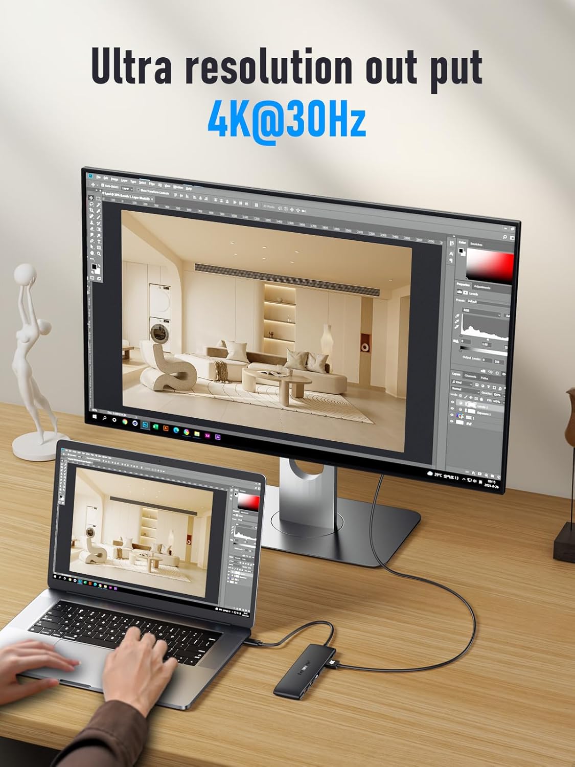 - [4K HD Display]: 2 HDMI in MST: Max 1080P 60Hz, 2 HDMI in SST: Max 4K 30Hz; Single HDMI: 4K 30Hz; Please note: lf you use it to connect to a Macbook, it supports mirror mode (SST-AAA mode), and supports extended mode (ABB Mode), but not support extended mode (ABC mode), no matter how many monitors you connect! The 4K resolution of this USB C to HDMI adapter ensures that the video output is crystal clear and sharp, making it ideal for streaming, gaming, and video editing.