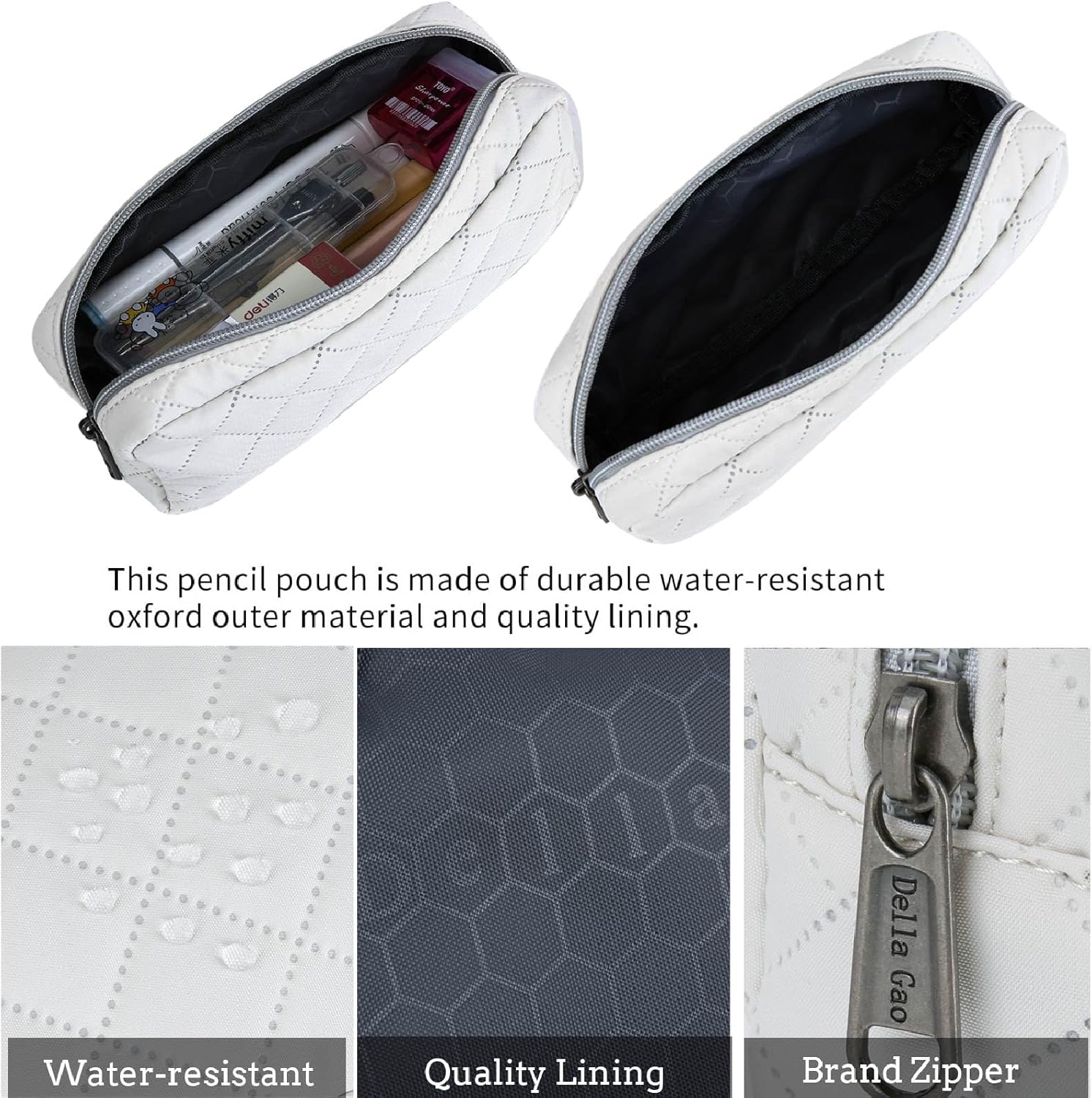 Della Gao Small Pencil Case Large Capacity Pencil Pouch Marker Pen Bag Coin Pouch Office Stationery Organizer (Beige-RH)