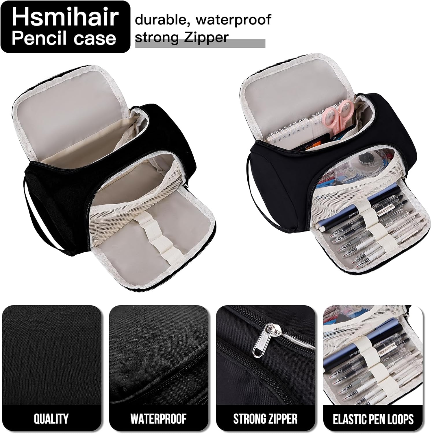 - 【Large Pencil Pouch】Large Storage pencil boxes sophisticated inner structure with elastic loop and multiple compartments, have the ability to store and organize up to 200 pens or pencils