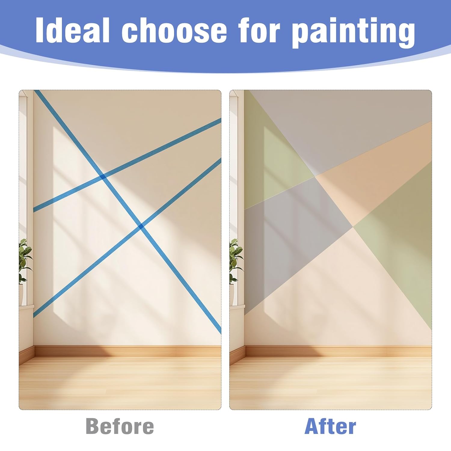 - Wide uses: Painters tape is usually used in home improvement, such as wall painting, window masking, closet DIY color separation, floor edge treatment, automobile repair, sealing, labeling, etc., and is widely used