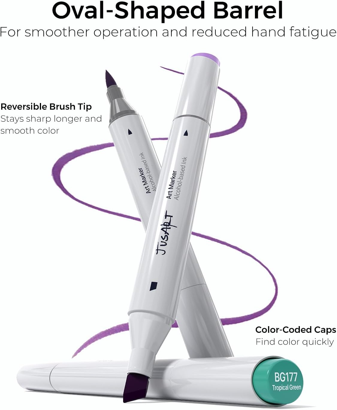 - Create with Comfort and Stamina: The ergonomic oval barrel provides a comfortable grip to reduce fatigue during long drawing sessions. Its unique shape enhances control and stability for precise lines and seamless blending, allowing you to color and create comfortably for hours. The color-coded caps make organization effortless and color selection quick and easy