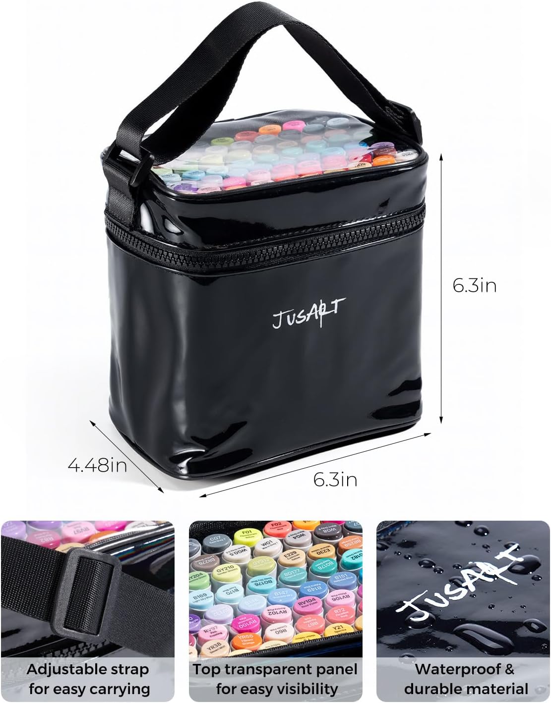 - Alcohol Marker Case: This adjustable and transparent marker case features a convenient strap for easy carrying and a top clear panel for quick content visibility. Crafted from shimmering PVC glossy material that gleams under light or sunlight, this case is waterproof and highly durable. These alcohol brush markers are perfect for on-the-go creativity and make a thoughtful gift for any art lover