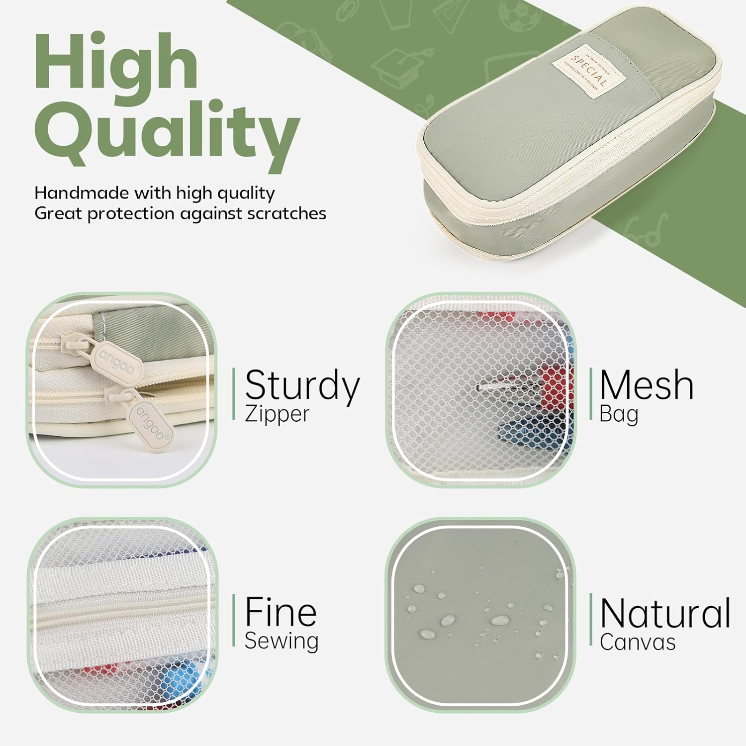 Pencil Case, Large Capacity Aesthetic Pencil Cases with Durable Zipper, Big Stationery Pencil Pouch for Women & Men, Adults Portable Storage Organizer Bag for College, Office, Travel (Green)