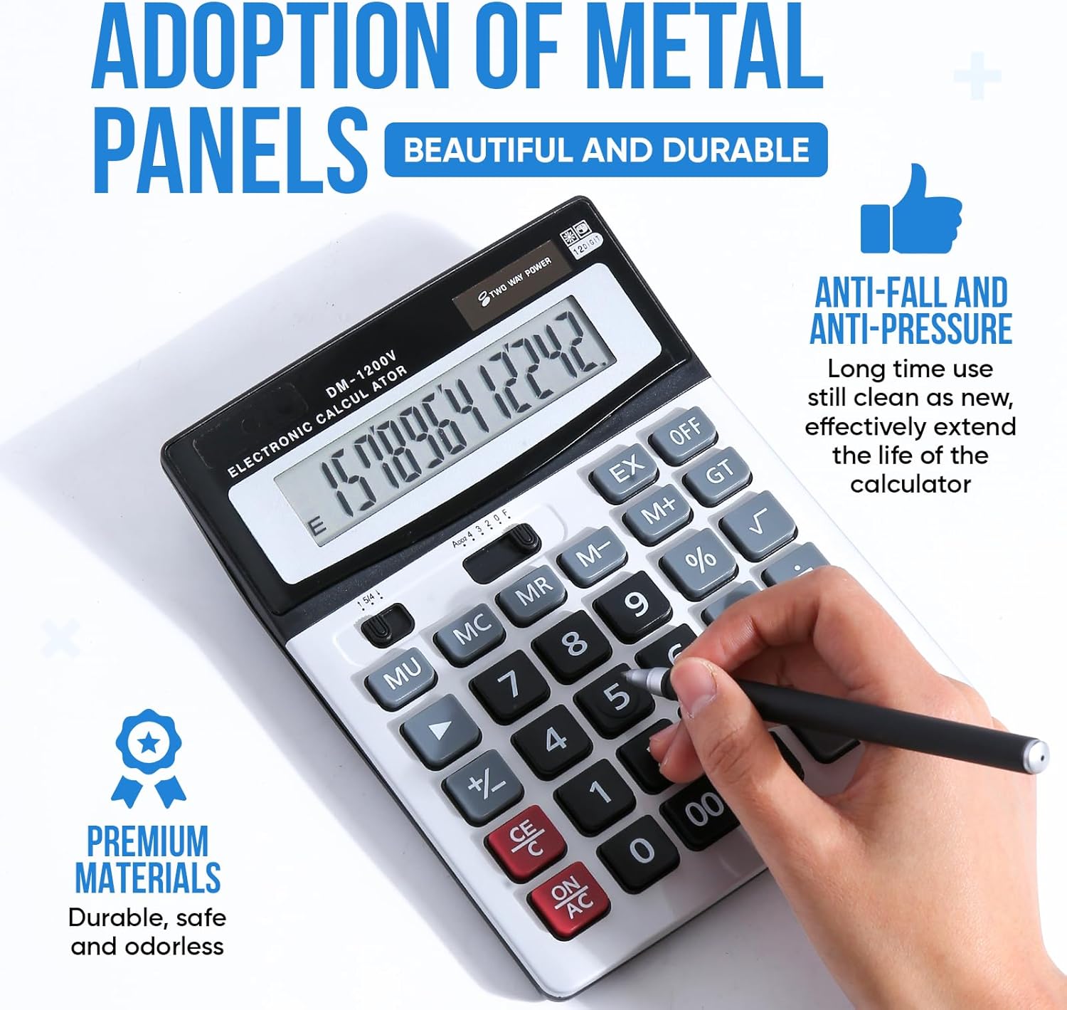 Calculator, 12-Digit Large LCD Display Calculators Desktop, Dual Powered Calculators for Office/School, Big Button Basic Desk Calculator with Standard Function