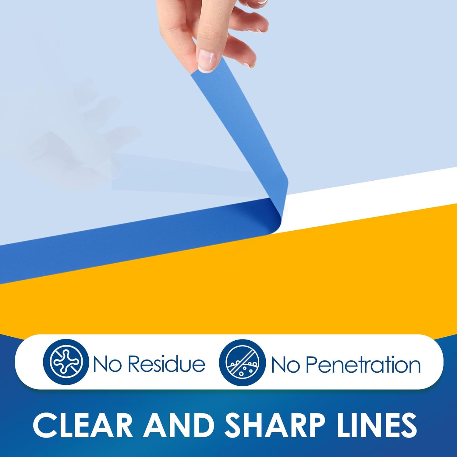 - Superior Craftsmanship: Our paint tape for walls is made from premium blue crepe paper, effectively preventing paint bleeding and helping you create clean, sharp lines. The painter tape's smooth, flat surface resists curling and is ideal for writing and labeling
