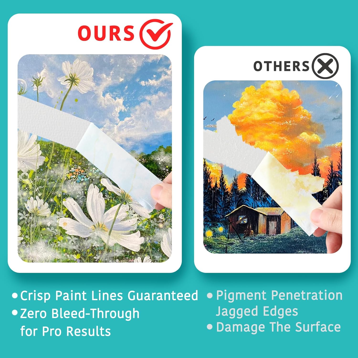 - ✅ Professional-Grade Precision – Achieve crisp lines with white painters tape that resists paint bleed. Perfect as painters tape for edges, canvas art, or framing