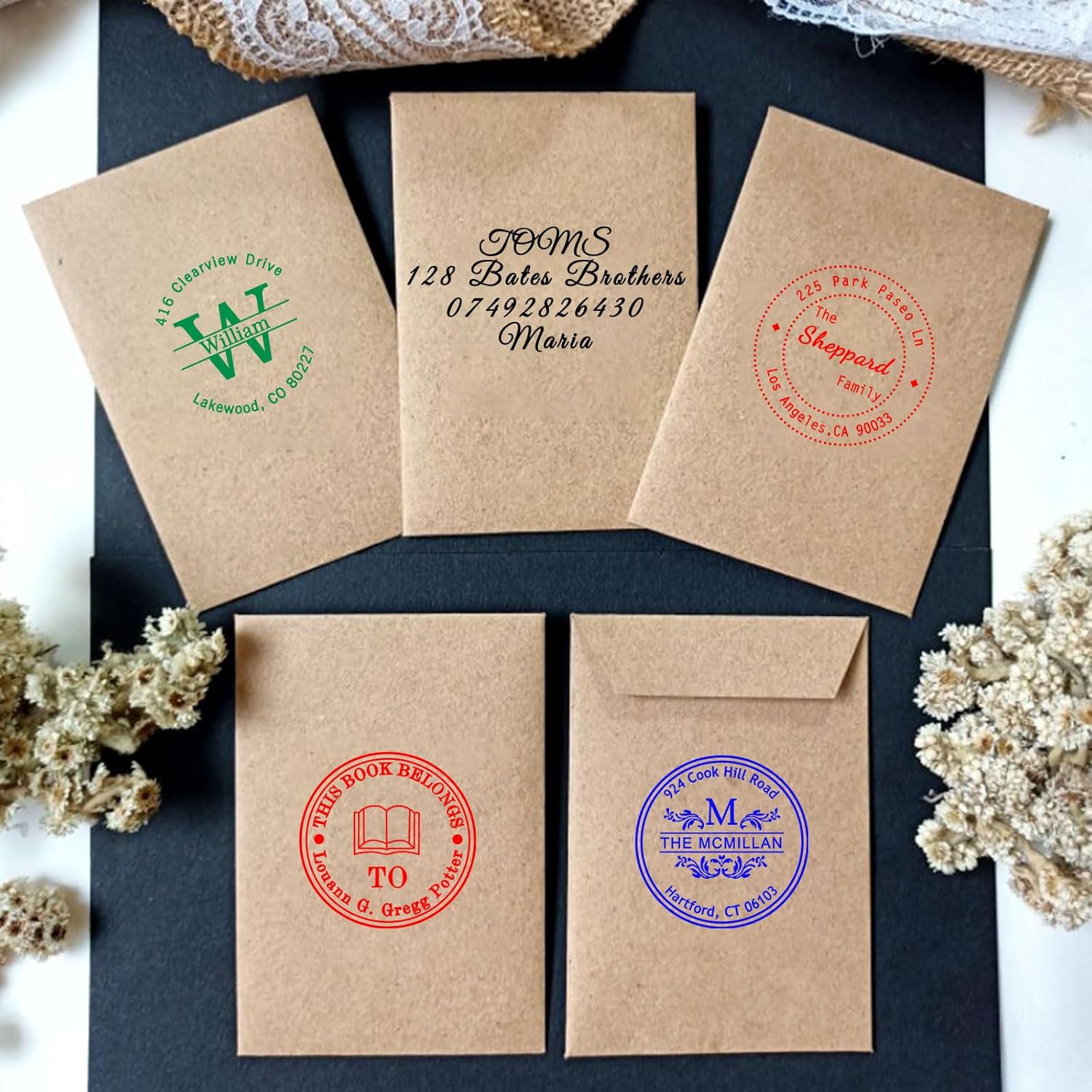 - Custom Stamps Pre-Installed Self-Printing Technology:Adopting the installation-free self-printing system, no need to add additional ink, press to show clear imprints! Optional black/red/blue/green 4 classic printing colors, suitable for different scenes such as contract signing, document annotation, gift packaging, etc., whether it is office documents or handmade DIY, it can accurately present bright colors and refuse blurring.