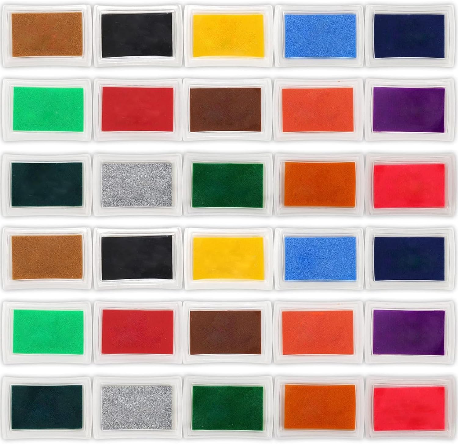 DEAYOU 30 Pack Craft Ink Pads, Washable Finger Stamp Pad for Rubber Stamps, Card Making, Paper, Wood, Fabric, Scrapbooking, DIY, Children, Adult, 15 Colors