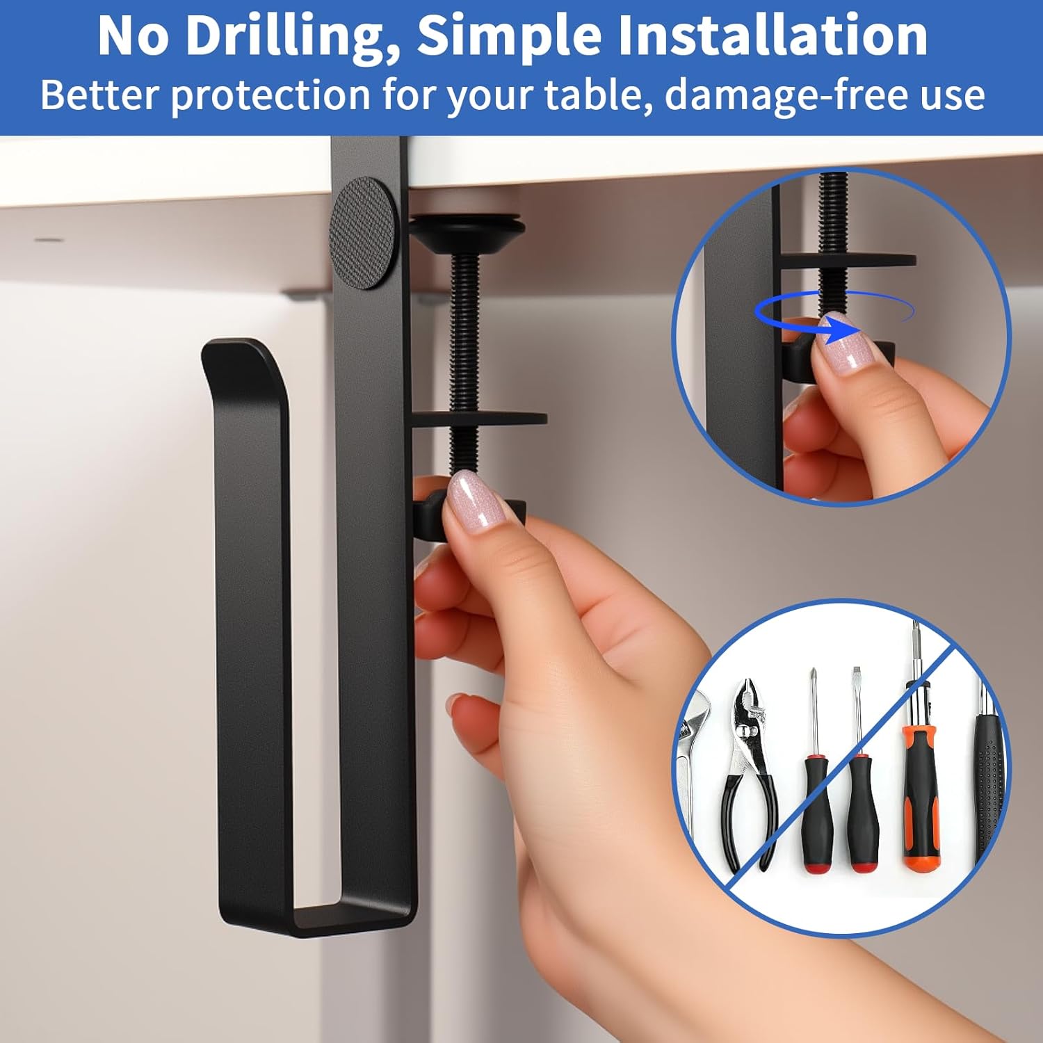 - No Drilling & Easy To Install: Our no drill desk storage organizer is easy to install, no tools needed, no screw driver needed, just hand rorating within seconds. Importantly it won't damage your desk