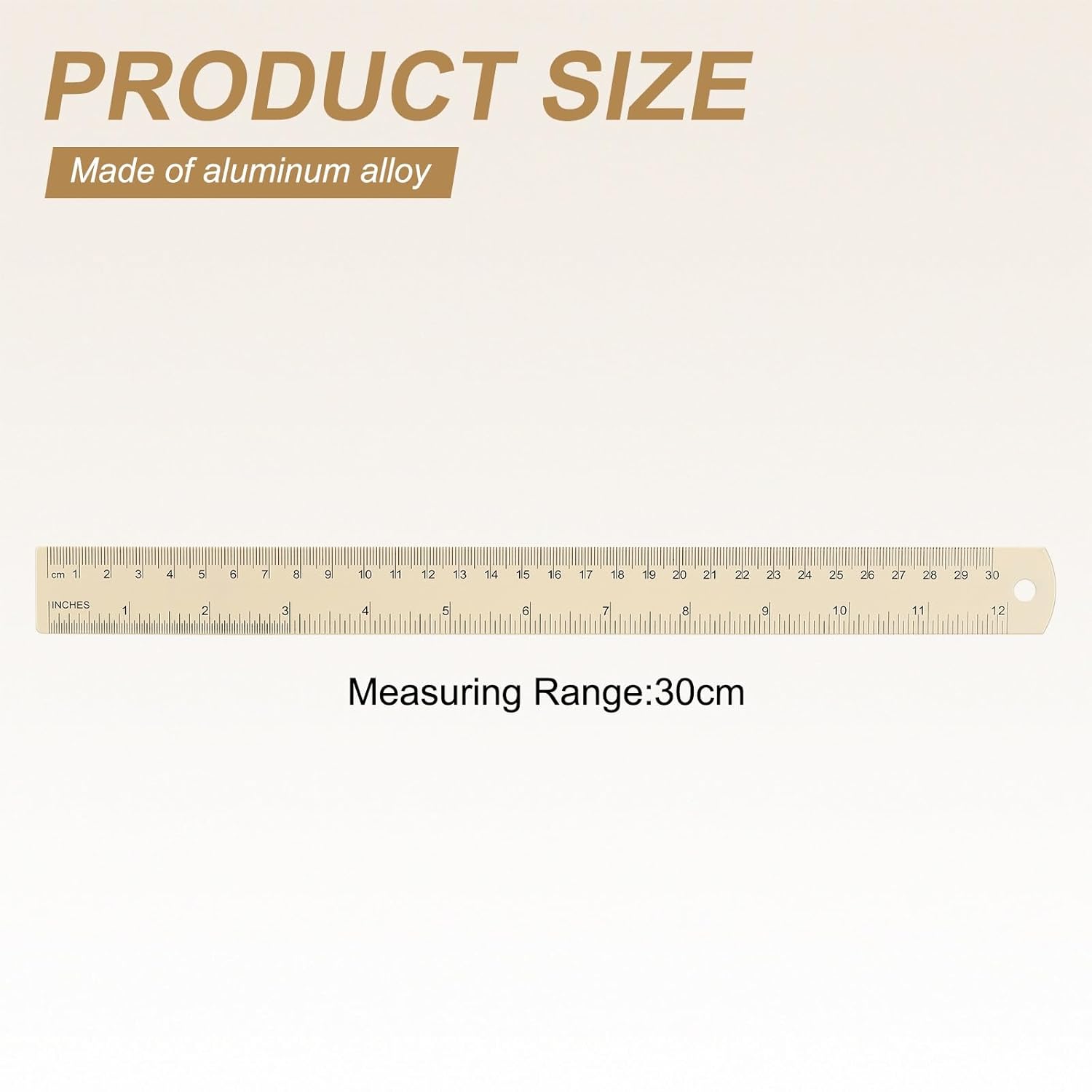 HARFINGTON 6pcs Metal Straight Ruler 30cm Metric SAE Aluminum Alloy Measuring Rulers Scale Tool with Hole for Measure Study Reading Classroom Office, Beige