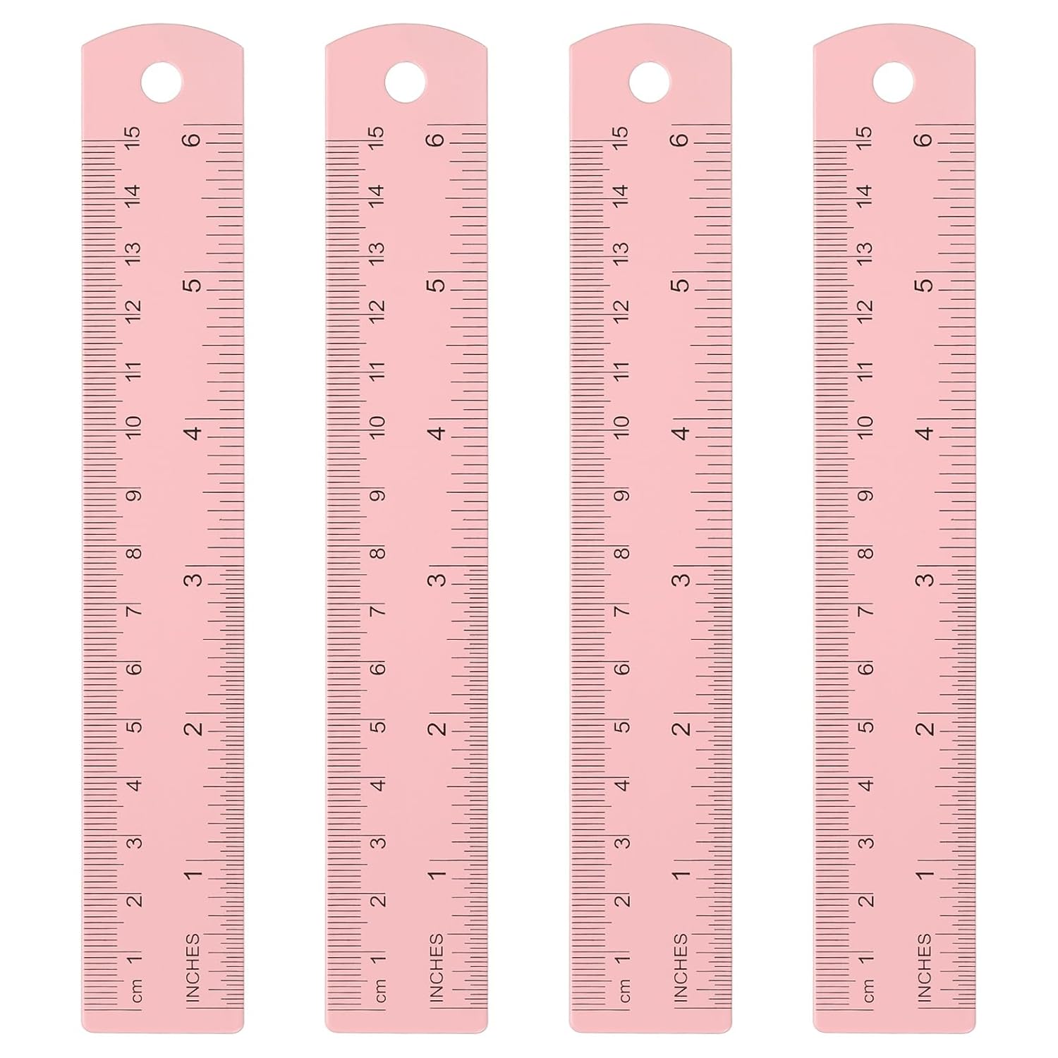 HARFINGTON 4pcs Metal Straight Ruler 15cm Metric SAE Aluminum Alloy Measuring Rulers Scale Tool with Hole for Measure Study Reading Classroom Office, Pink