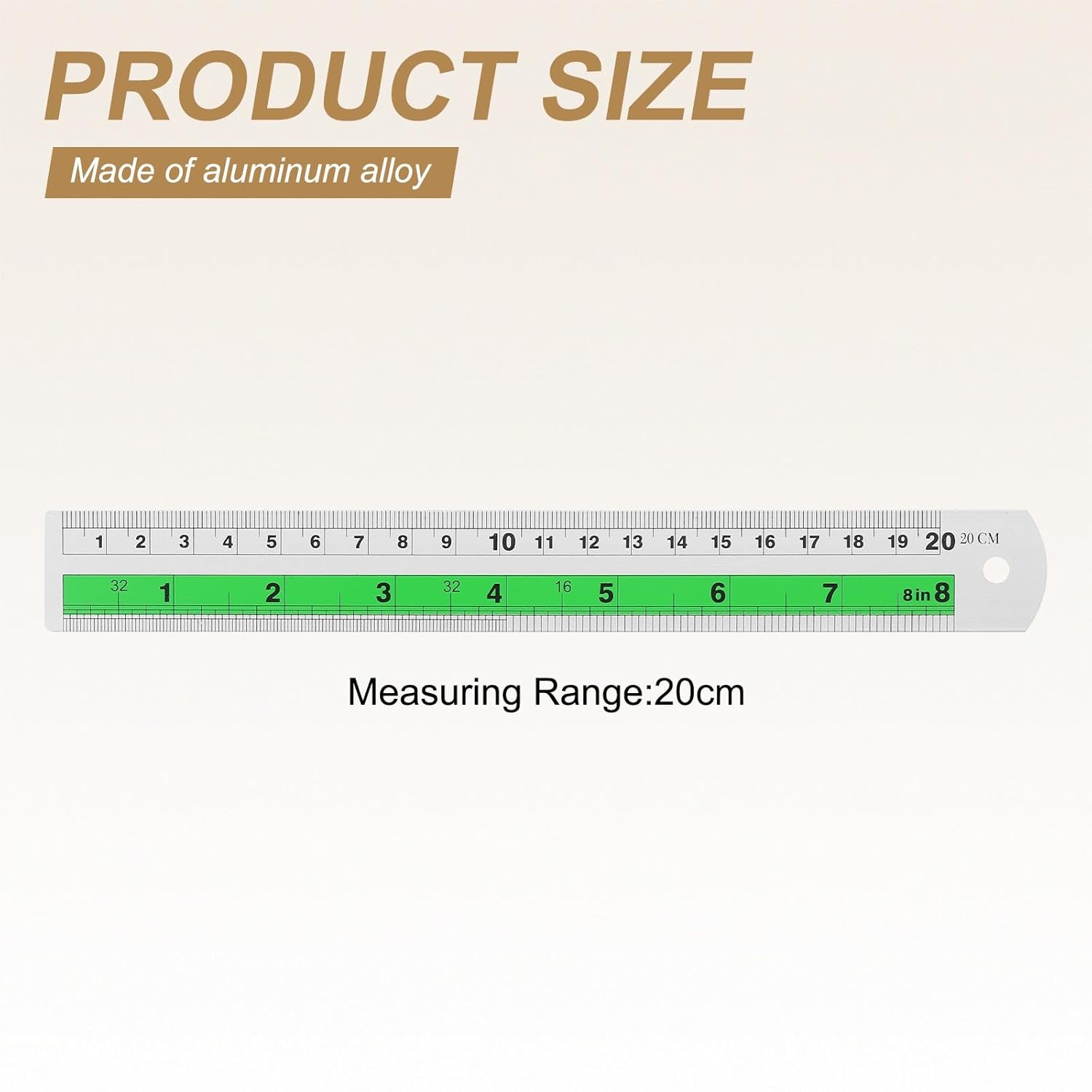 HARFINGTON 6pcs Metal Straight Ruler 20cm Metric SAE Aluminum Alloy Measuring Rulers Scale Tool with Hole for Measure Study Reading Classroom Office, Green