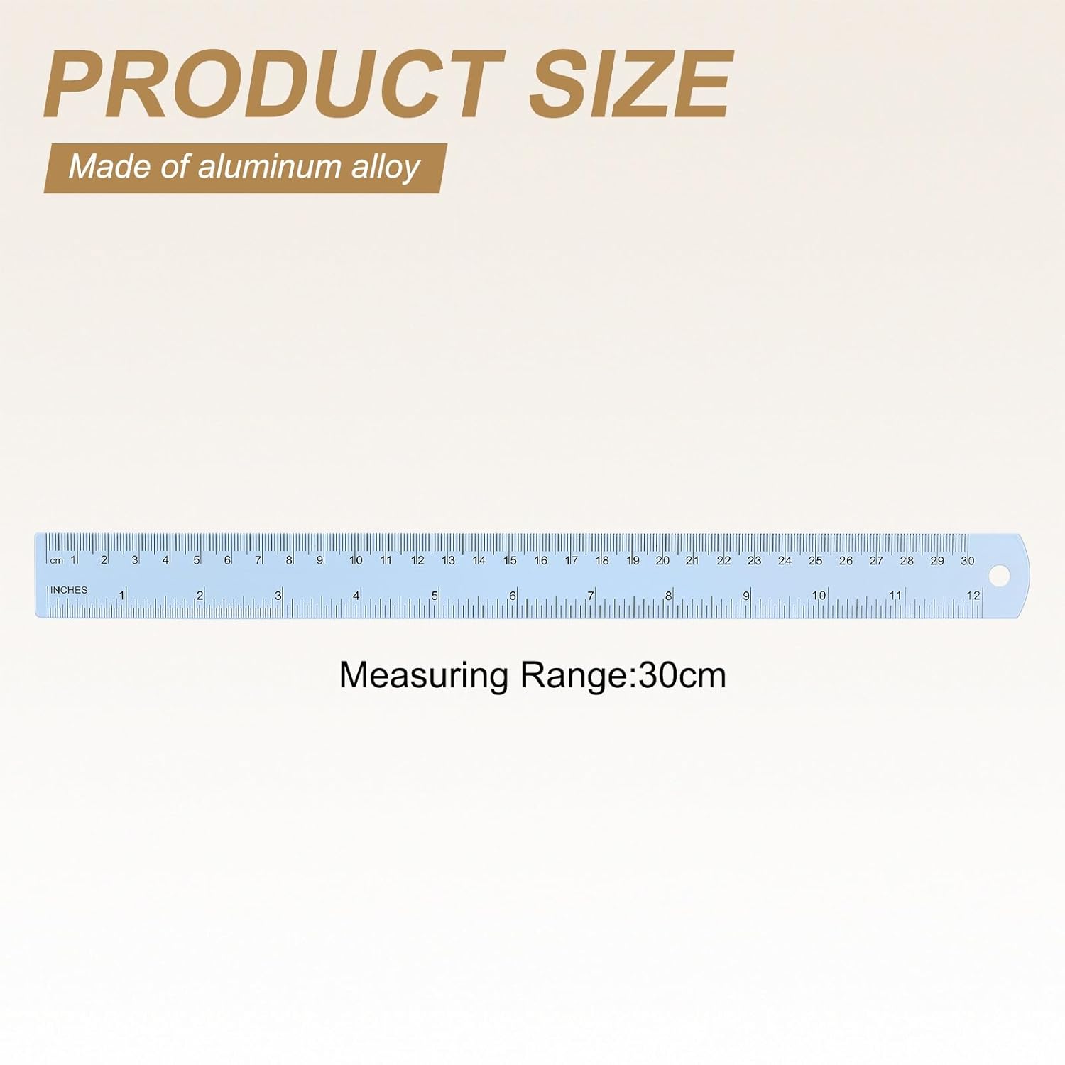HARFINGTON 2pcs Metal Straight Ruler 30cm Metric SAE Aluminum Alloy Measuring Rulers Scale Tool with Hole for Measure Study Reading Classroom Office, Light Blue